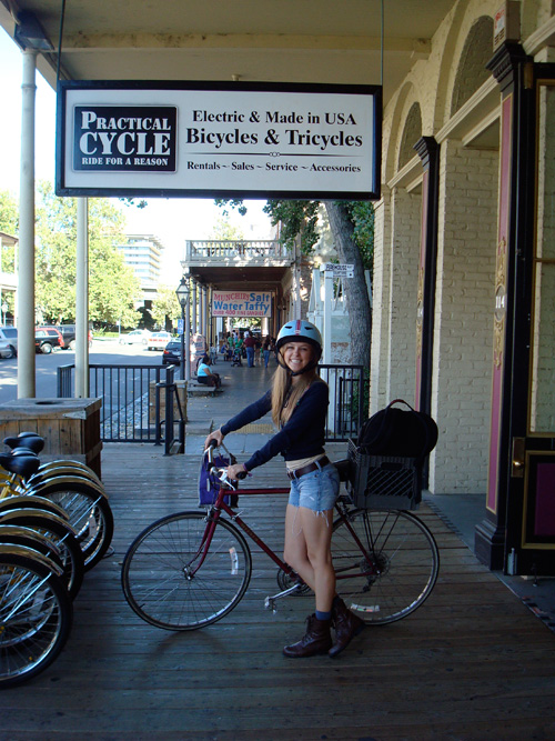 And last but not least, I am delighted to introduce a new member of the Practical Cycle family.  Hanna Snider is a bright, charismatic Berkeley graduate and intern at the California State Capitol.  My dad met her while they were both riding to work on the American River Parkway.  She does not own a car and she gets around town on the same bike her mom rode in college!!!  Hanna will be leading guided tours featuring Sacramento’s rich history and scenic vistas.
