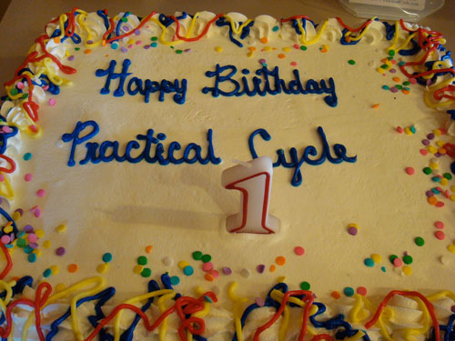 Practical Cycle celebrated our very first birthday on Thursday, March 3, 2011 by expressing our gratitude to all of our customers who have supported our growth by spending their hard-earned money. We are also especially grateful to Granny Castleman and our landlords Bill and Dorothy Beale for believing in us, as well as Uncle Mike, Bill Leddy, Hanna Snider and Fletcher Cinder for all their hard work.